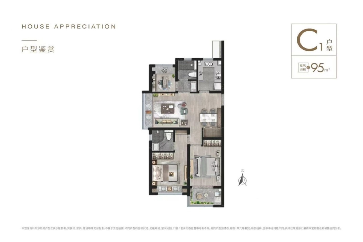 3室2厅1厨2卫 建面95.00㎡
