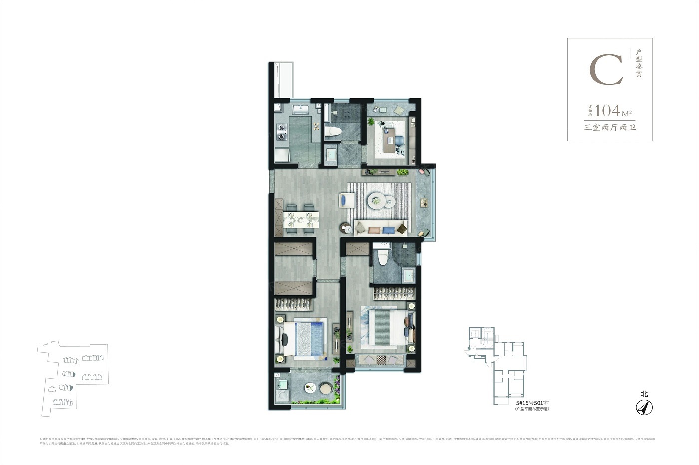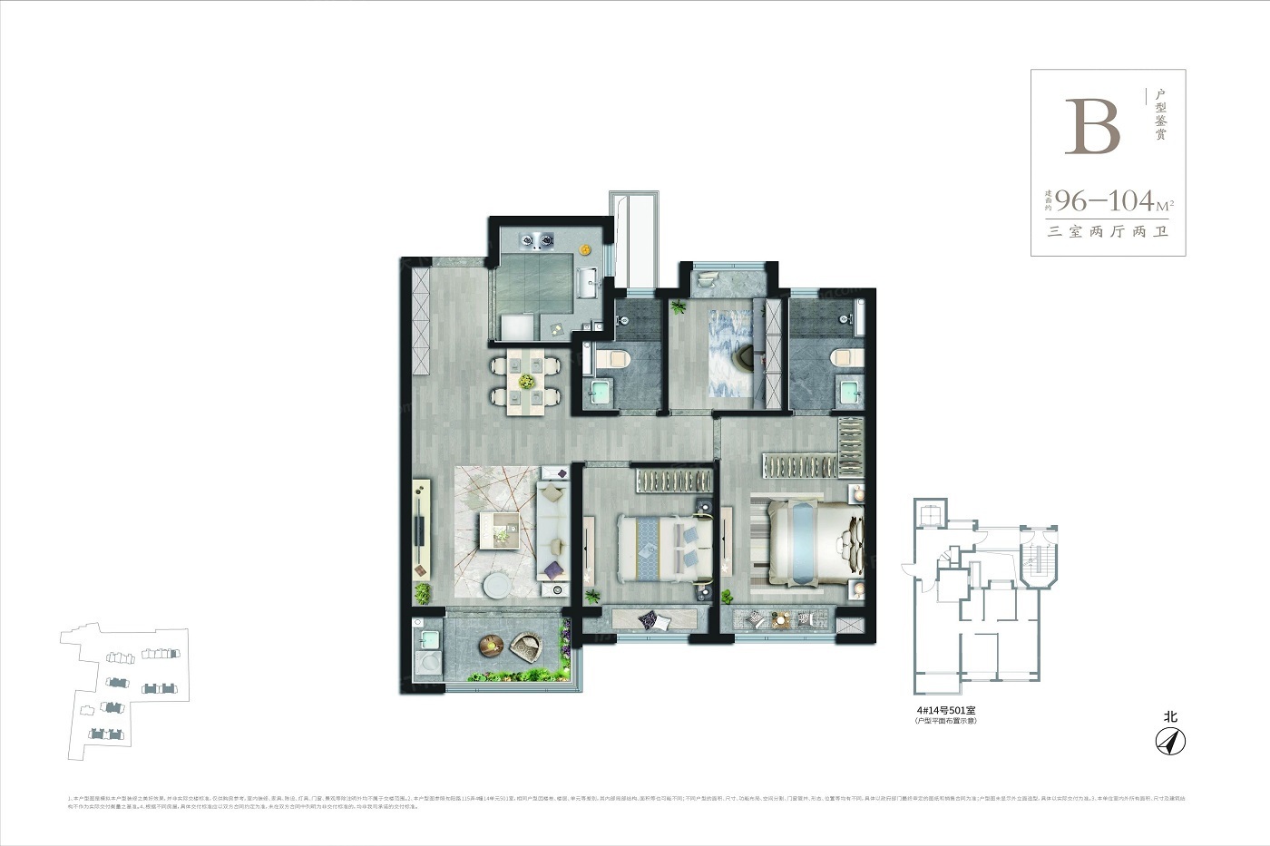 3室2厅1厨2卫 建面104.00㎡