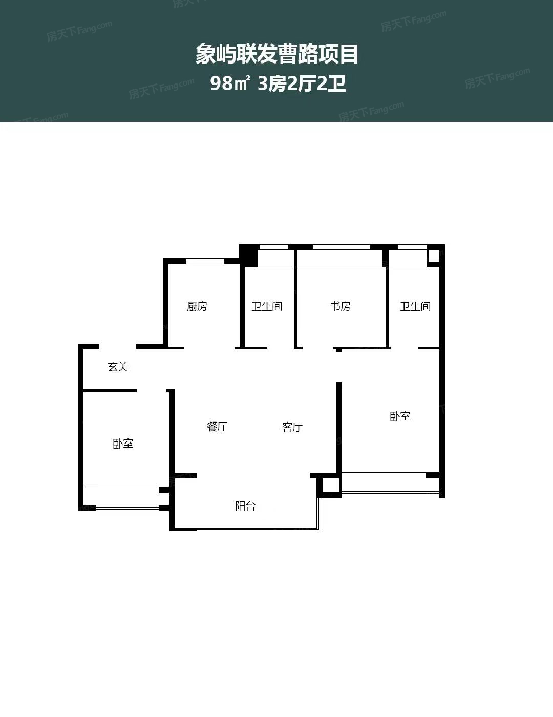 3室2厅1厨2卫 建面98.00㎡