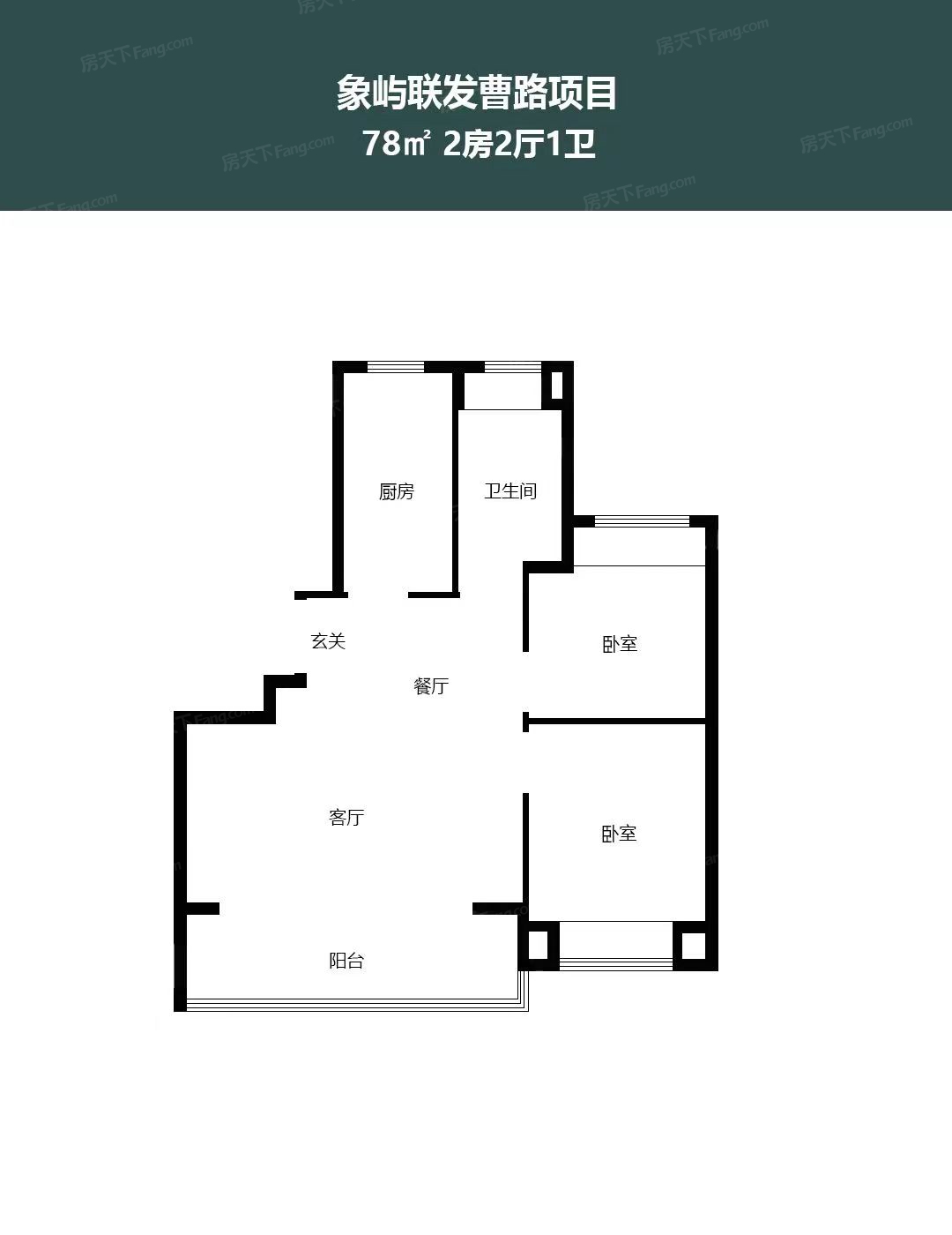 2室2厅1厨1卫 建面78.00㎡